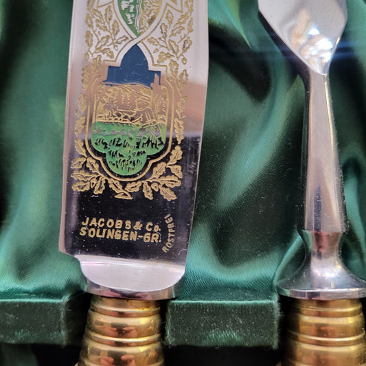 Refurbished - JACOB & CO Solingen Germany Carved Antler Handle 2pc Carving Set