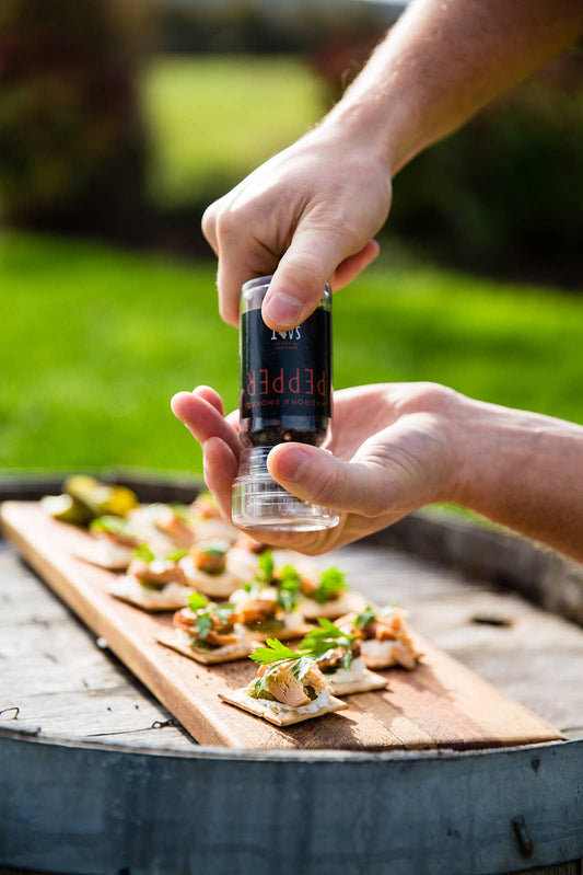 Everyday salt, finishing salts, spices, hot sauce, local honey