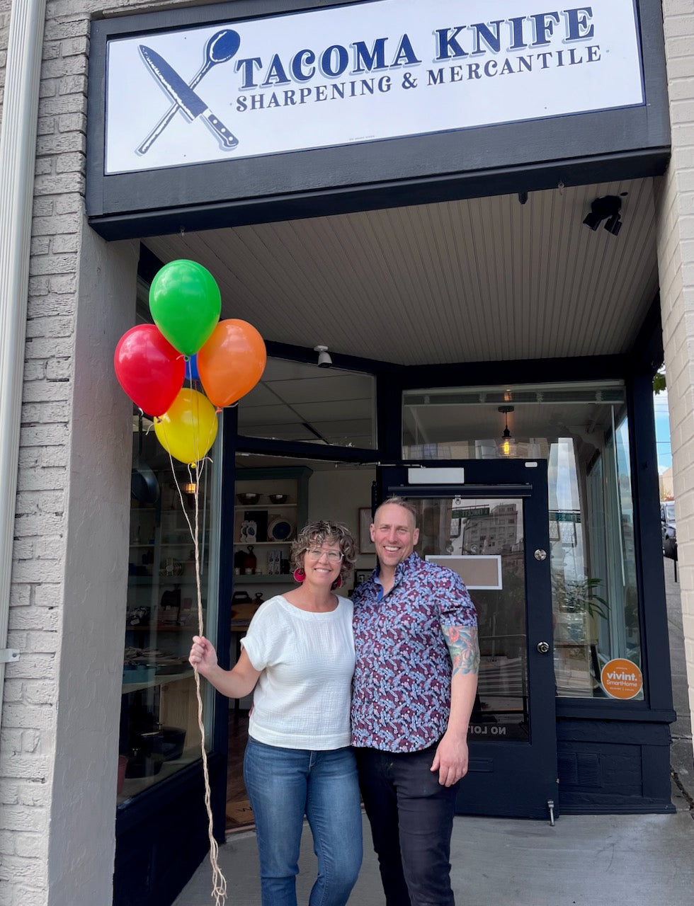 While winding down his career in restaurants, Stephen started training in knife sharpening. He set up shop in our garage, with pickups and drop offs from the front porch. Meanwhile Sarah was running her business, Downing Pottery, from the basement studio and selling exclusively online. The Merc gives both of our businesses a centralized location to engage with customers face-to-face, and add to our offerings with goods and gifts for all who love to cook and entertain.