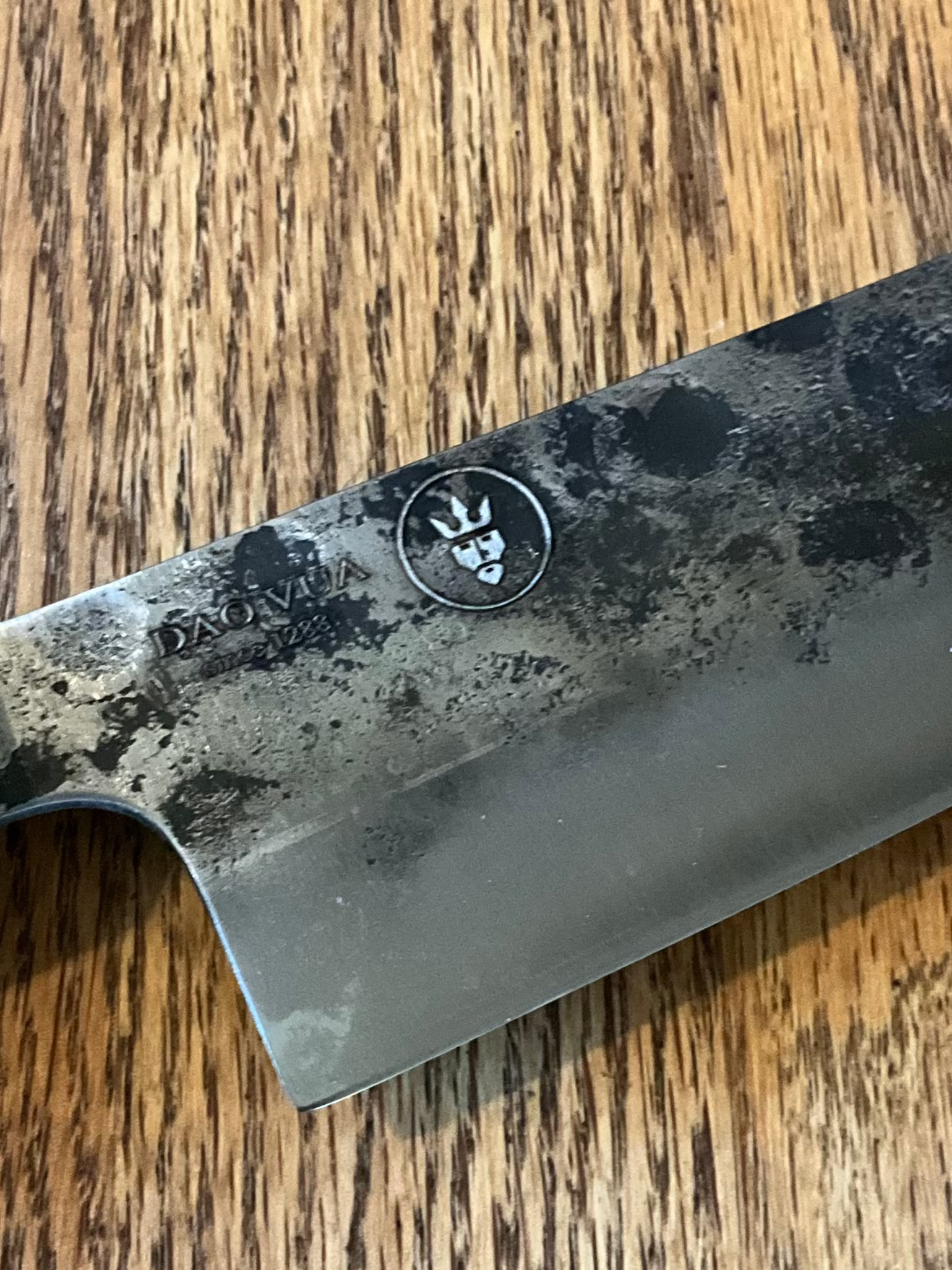 Dao Vua Knives are hand forged in Hanoi, Vietnam. The blades feature a rustic look, due to the high carbon steel used. These knives must be properly maintained to keep away rust and corrosion.