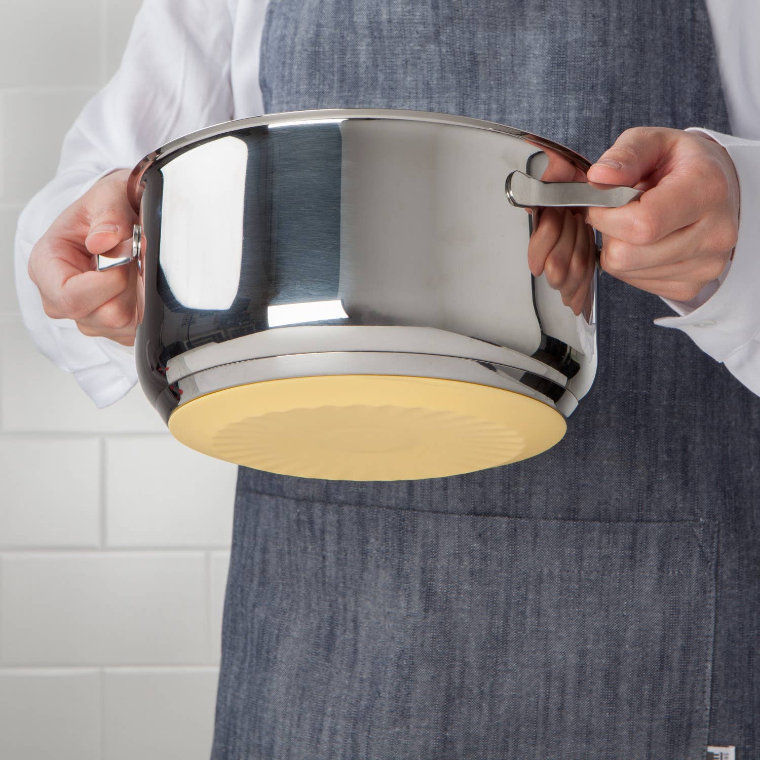 Enjoy the perfect combination of sleek style and modern function with this bright and sunny Sunrise Magnetic Trivet from Now Designs. Featuring a stainless steel magnet that adheres to the bottom of metal cookware, this innovative trivet makes it ultra-easy to transfer meals from the kitchen straight to the dinner table. Durable silicone prevents heat damage to kitchen counters, tables and other surfaces. When not in use, the trivet conveniently clings to your refrigerator or other appliance so it's easy to reach when you need it next.